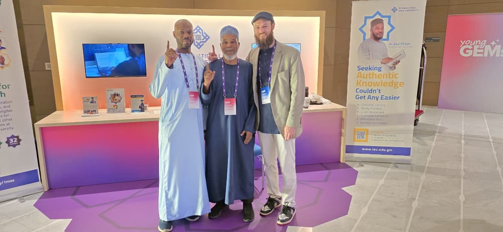 Pic: Yousuf Philips, IOU marketing director, IOU Founder-Chancellor Dr Bilal Philips, with Chris Abdur-Rahman Blauvelt (CEO of LaunchGood) at the IOU booth at the GEM Summit.